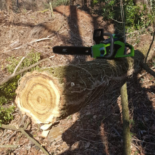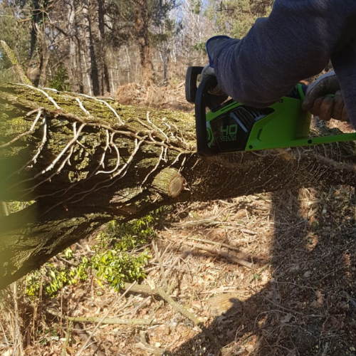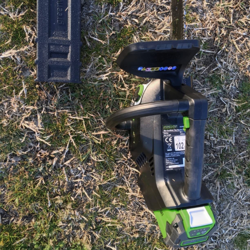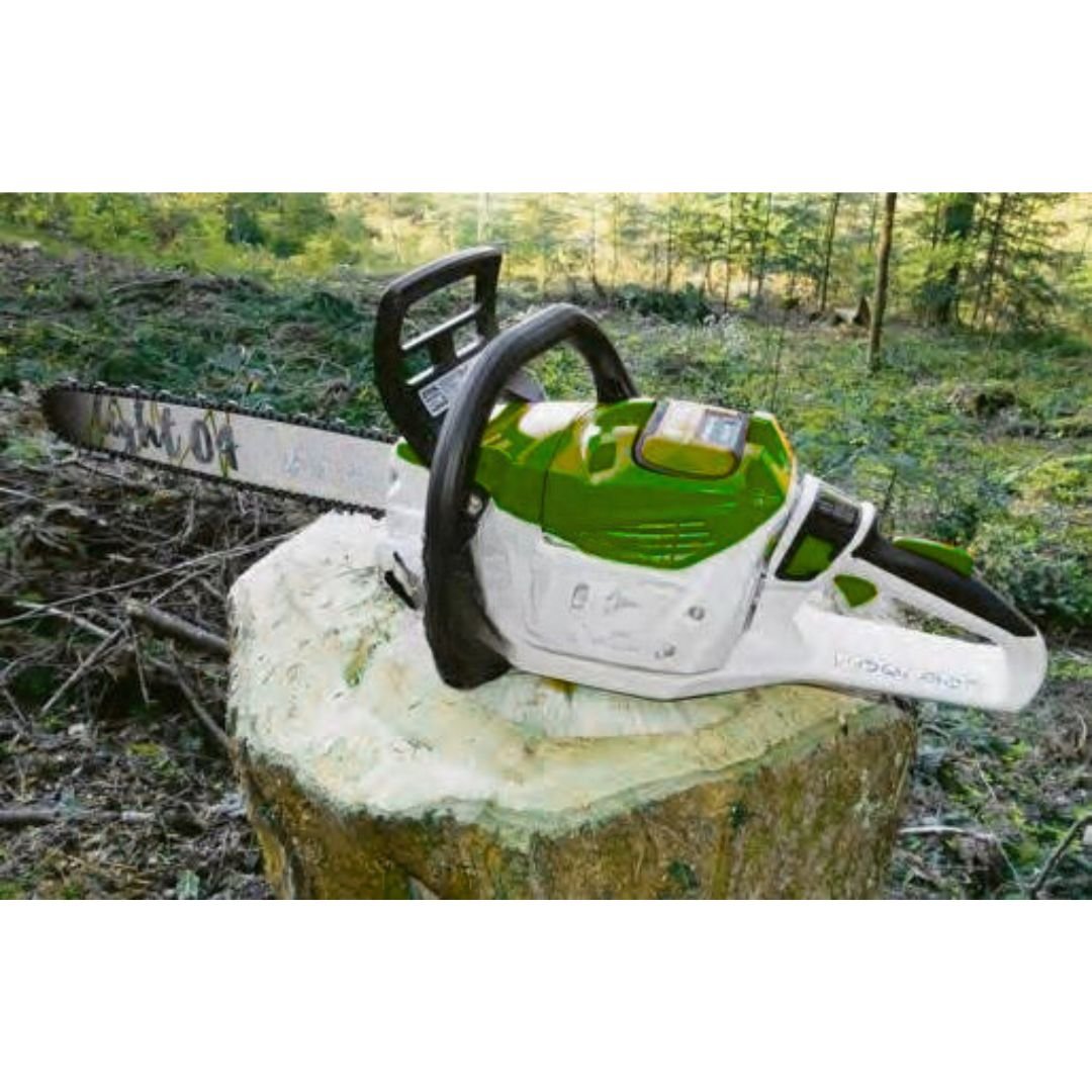 Ajándék: 2 db 40 V-os akkumulátor, 8 000 mAh kapacitással, töltővel, biztonságos szállítótáskával, 2 cserepengével, vágásálló kesztyűvel, karbantartó csavarhúzóval, védőszemüveggel, 3L lánckenő olajjal.